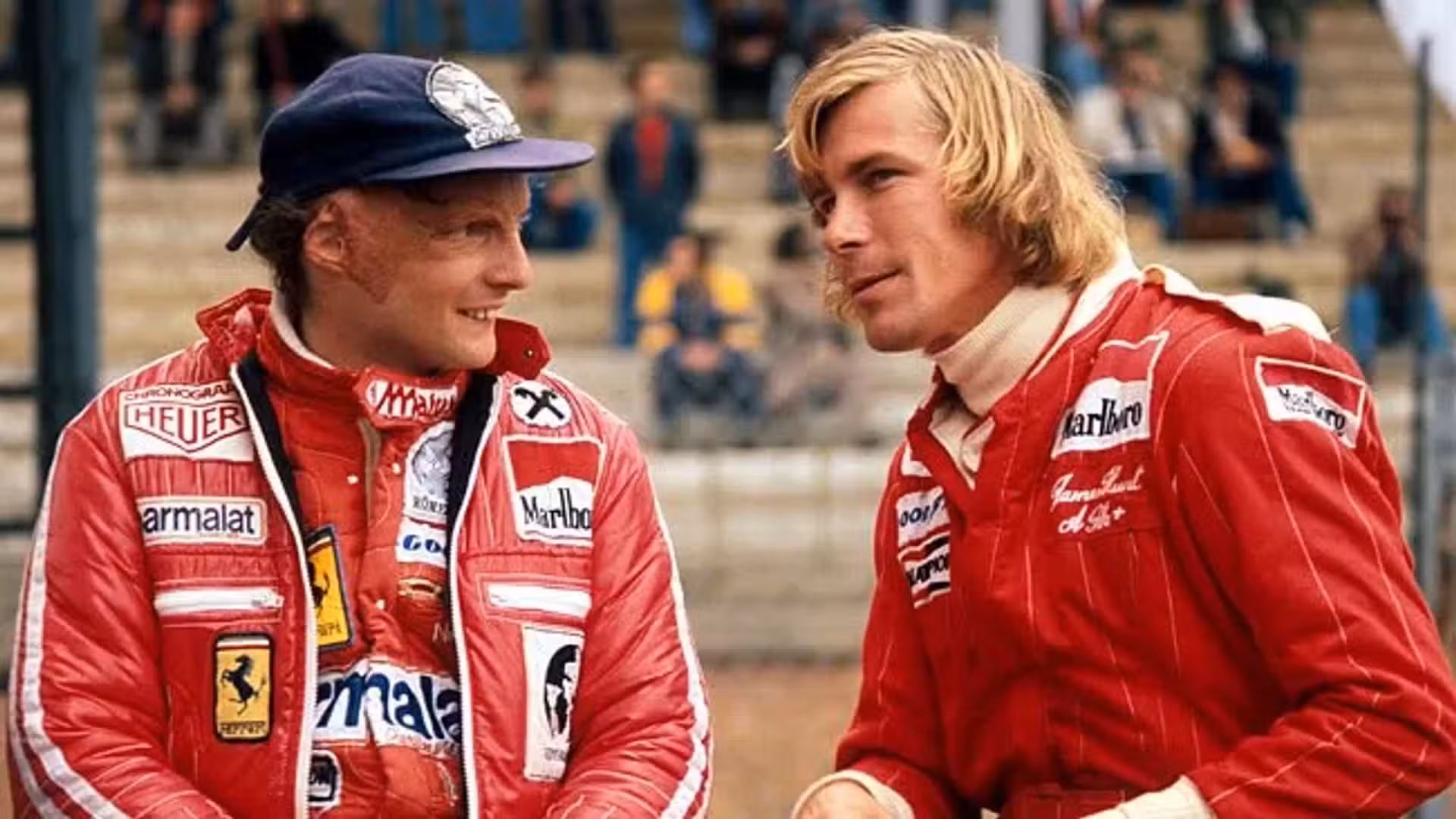 1976 entre Nikki Lauda (Daniel Brühl) y James Hunt (Chris Hemsworth). Ambos